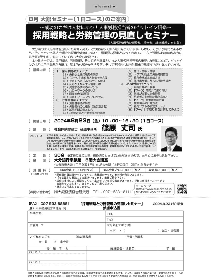 転職先で経験した過重労働の職場を無くしたいという強い想いから、社会保険労務士を目指し、2009年1月に社会保険労務士篠原事務所を設立。法令順守の労務管理をベースにタイムマネジメントの技術を使って働き方改革や業務改善の支援を行っている。