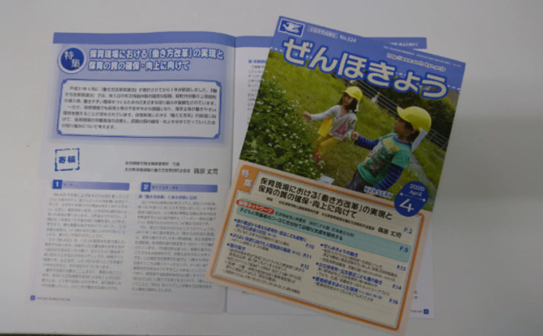 2020年4月1日 全国社会福祉協議会発行の会報誌「ぜんほきょう 4月号」に原稿が掲載されました。 タイトル「保育現場における「働き方改革」の実現と保育の質の確保・向上に向けて」です。 -
