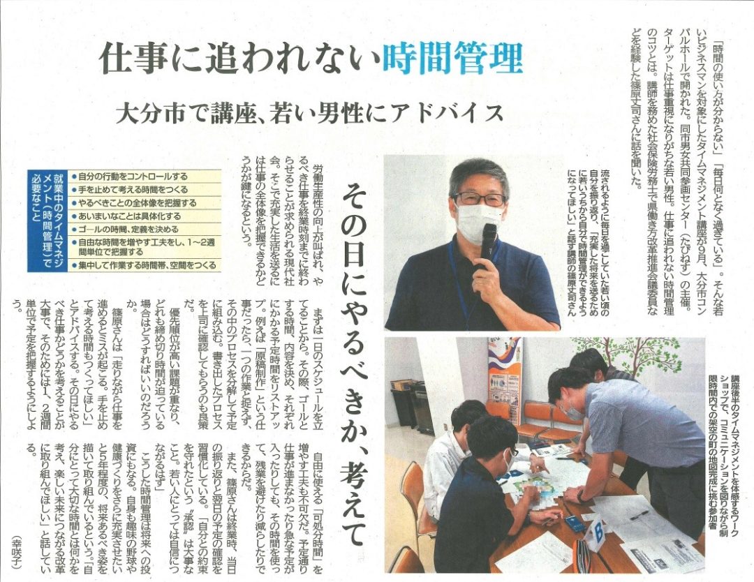 2022年10月18日の大分合同新聞の4面に タイムマネジメントに関する記事が掲載されました。 -